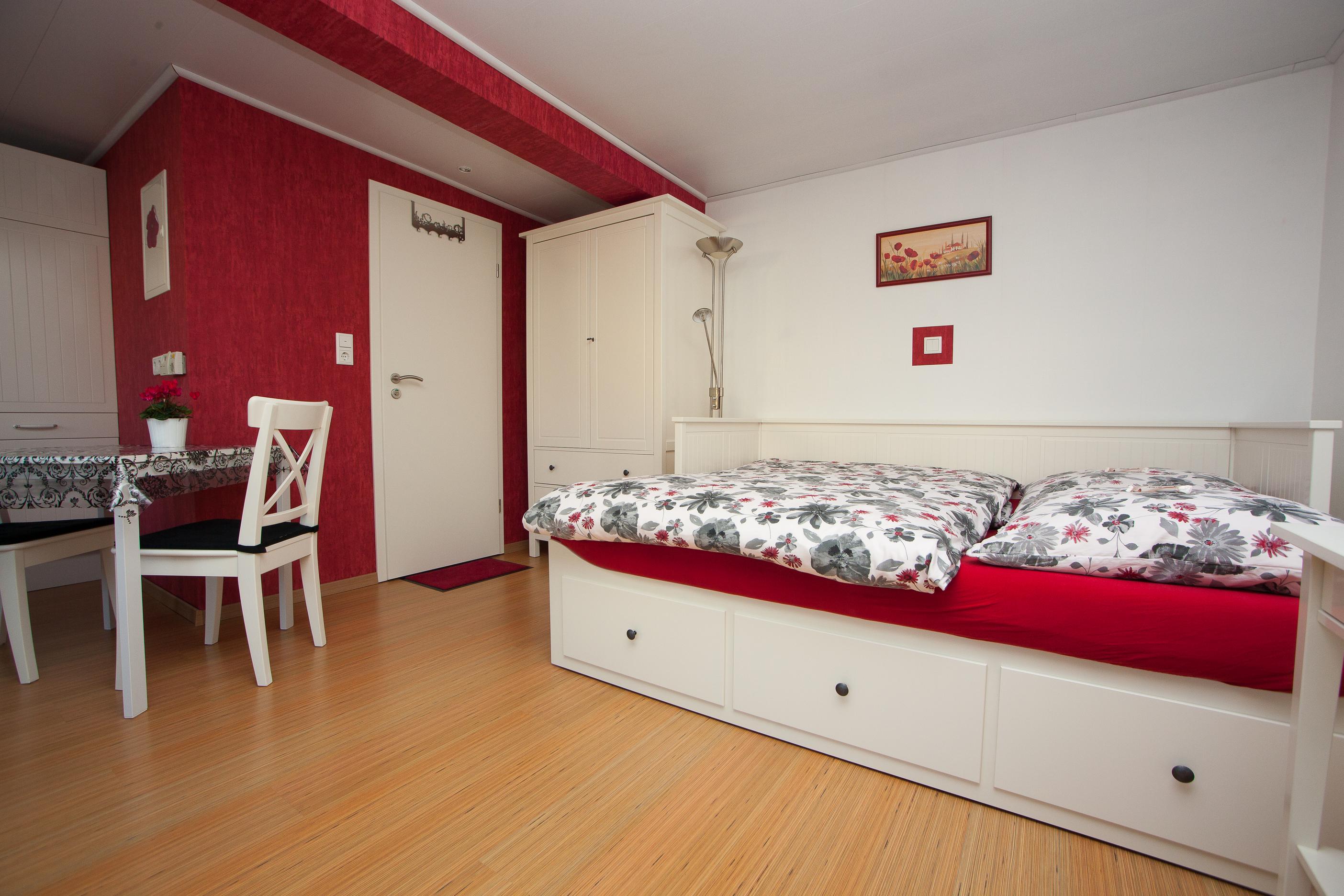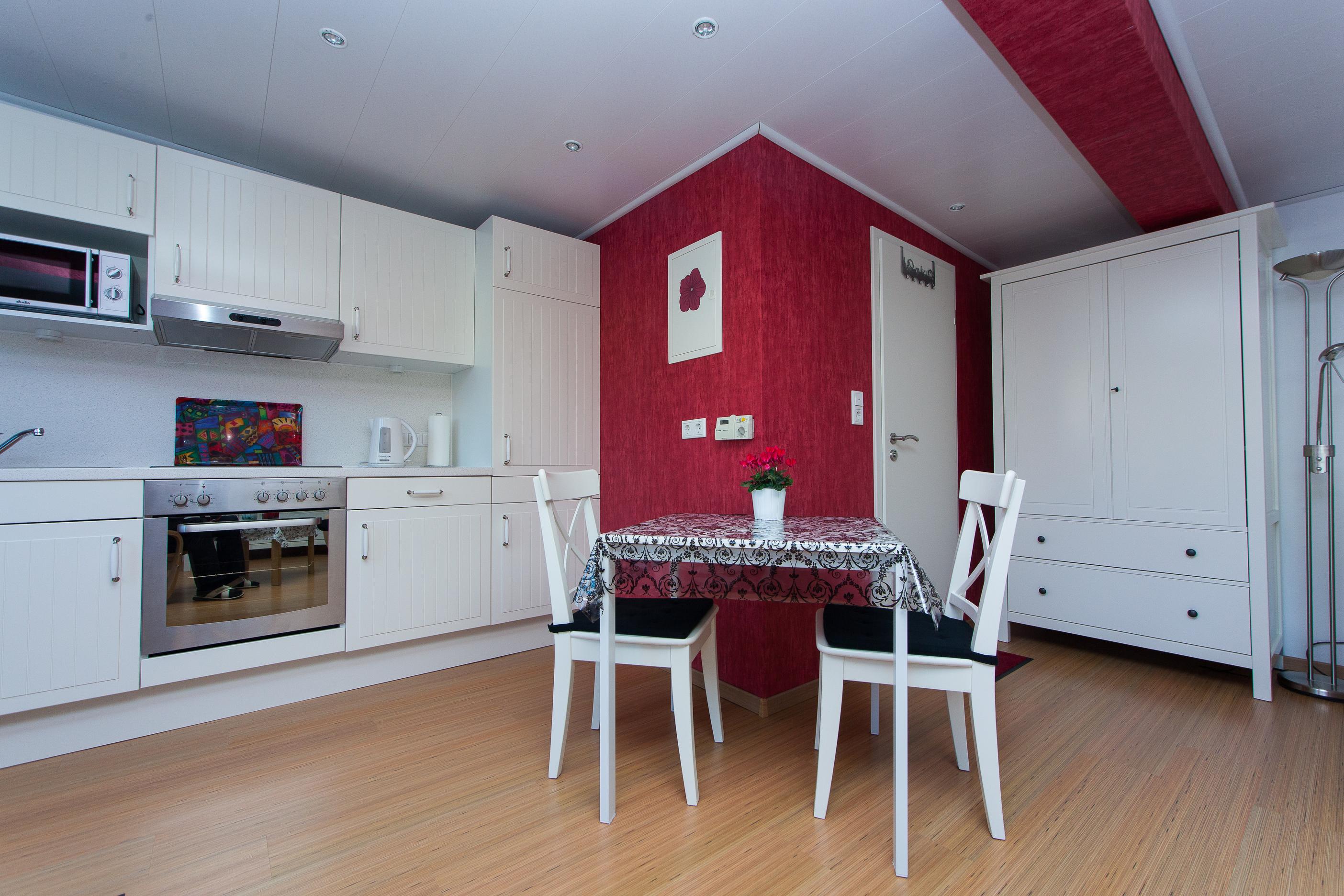 Die Ferienwohnung bietet eine Schlafmöglichkeit für 2 Personen auf bequemen Kaltschaummatrazen. Sie hat einen kombinierten Wohn-/Schlafbereich (ca. 26qm) mit einer Einbauküche und ein modernes Duschbad mit WC (4qm). Die Fassade und der Eingangsbereich wurden komplett neu gestaltet, mit großen Fenstern und einer Ganzglas-Eingangstür versehen. Alle Fenster (und auch die Eingangstür) sind mit elektrischen Rollläden versehen. Zusätzlich gibt es Vorhänge und Plissées, die einem Sichtschutz bieten ohne auf Tageslicht verzichten zu müssen.